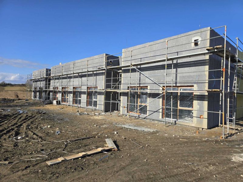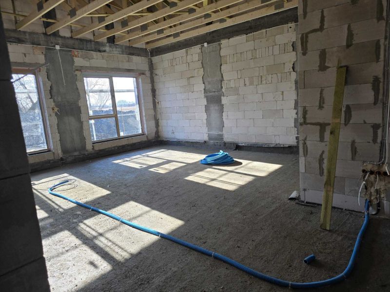 Ponadto wymurowano attykę wokół budynku wraz z wieńcem końcowym, wstawiono stolarkę okienną i drzwiową, rozpoczęto wykonywanie docieplenia ścian zewnętrznych budynku oraz układanie instalacji elektrycznej podtynkowej wewnątrz budynku. Wykonawca rozpoczął realizację prac infrastruktury podziemnej dla budynku (przyłącze kanalizacji sanitarnej, kanalizacji deszczowej).